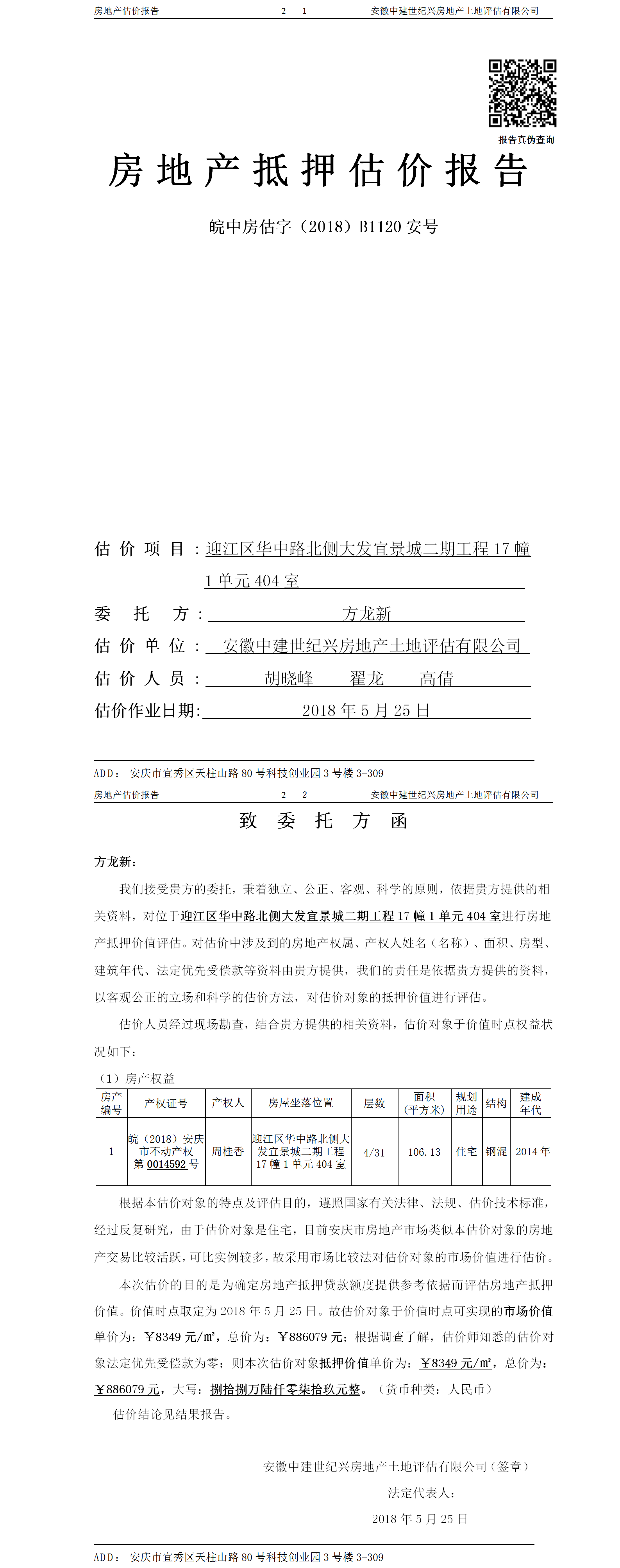 B1120安-正式报告-迎江区华中路北侧大发宜景城二期工程17幢1单元404室-方龙新-