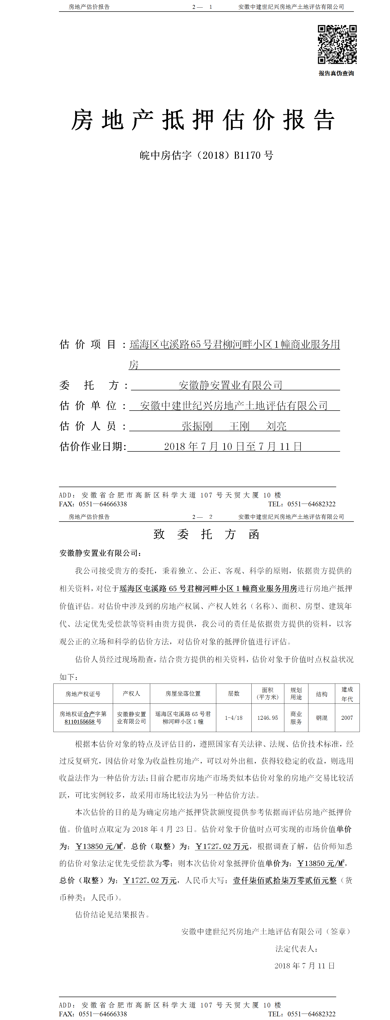 B1170瑶海区屯溪路65号君柳河畔小区1幢商业服务用房 安徽静安置业有限公司