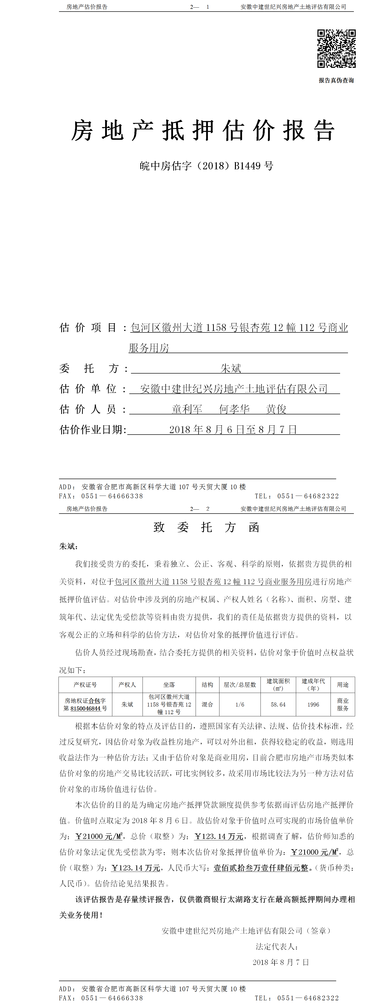 B1449包河区徽州大道1158号银杏苑12幢112号商业服务用房 朱斌