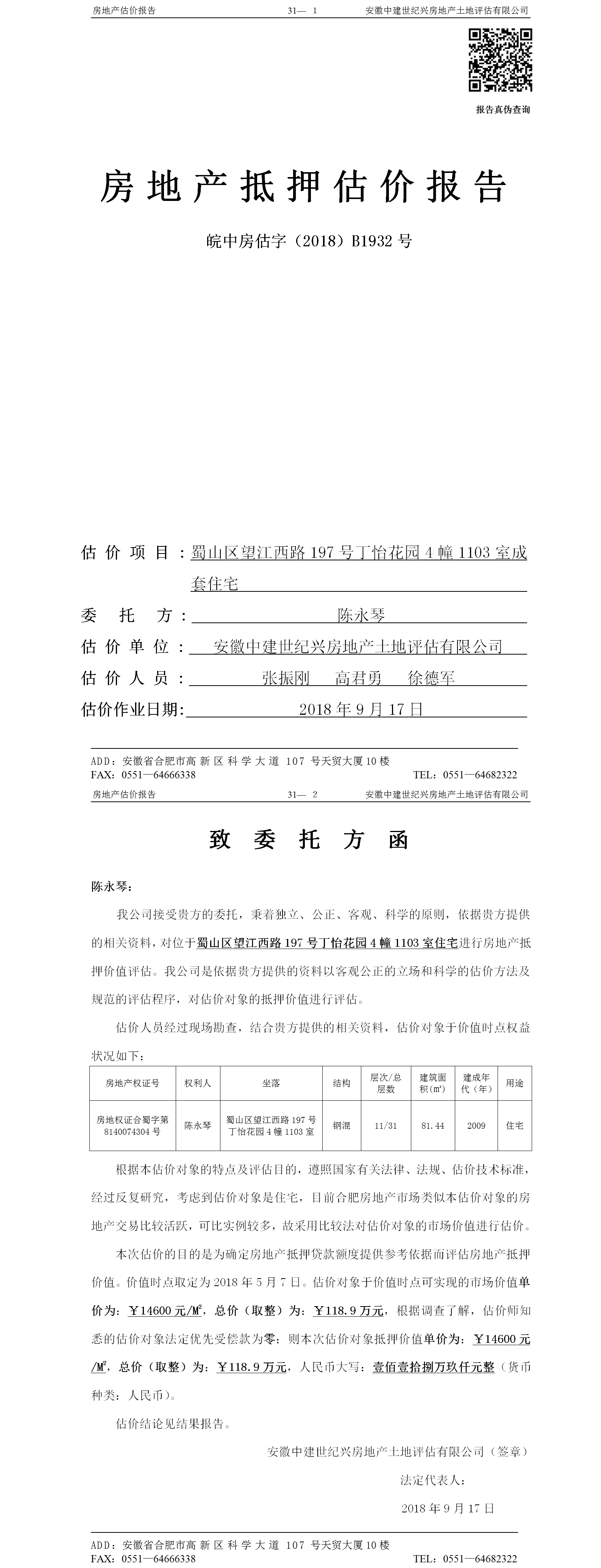 B1932蜀山区望江西路197号丁怡花园4幢1103住宅 陈永琴 科行大杨