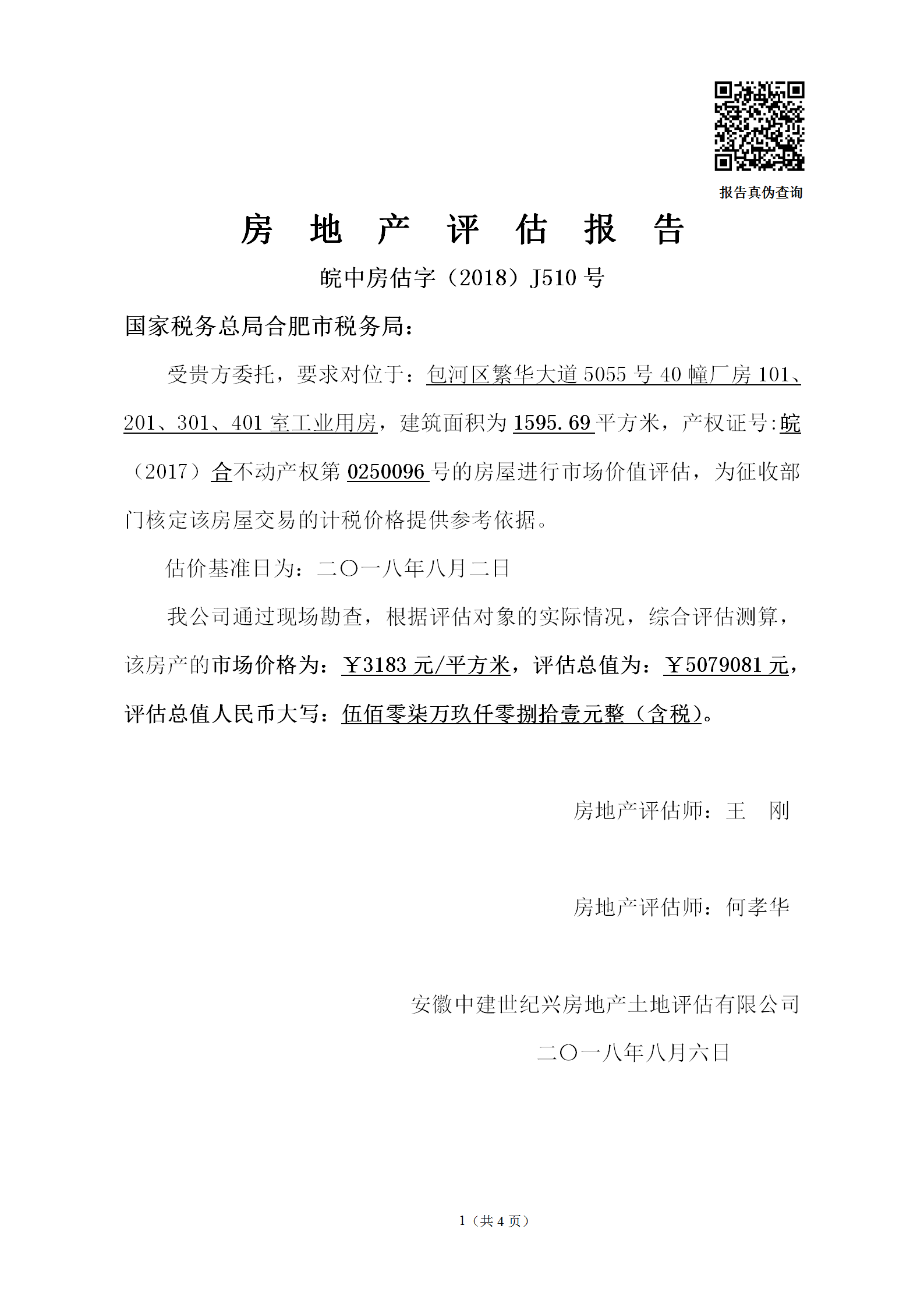 J510包河区繁华大道5055号40幢厂房101、201、301、401室工业用房 合肥联东金海投资有限公司